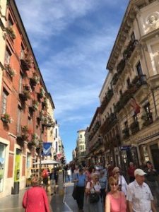 We then wandered through the narrow streets admiring the many different types of architecture and of course some window shopping. To rest our feet we we had a very leisurely lunch in a little sidewalk cafe. Delicious tapas, great Spanish wine, and people watching.