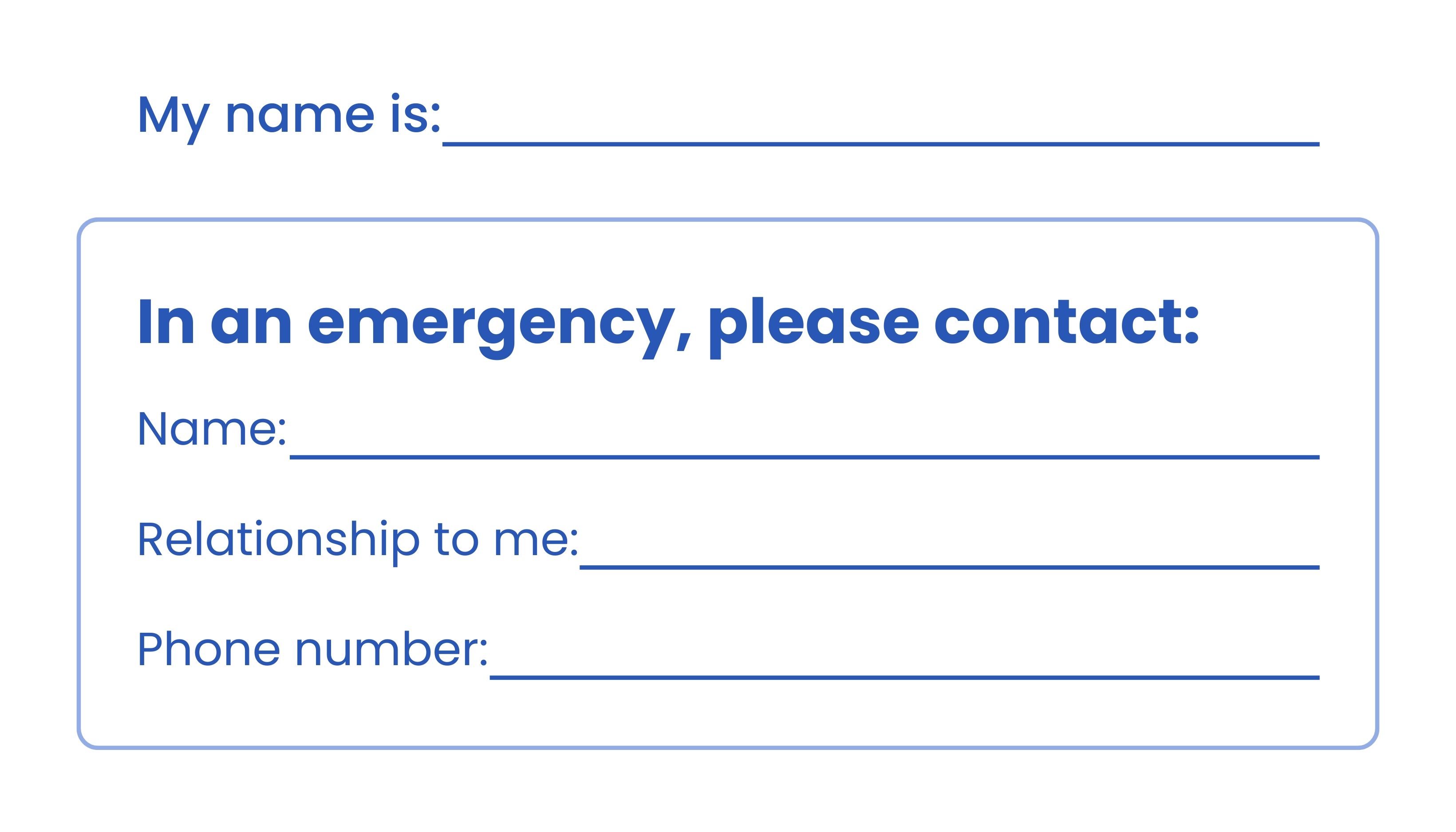 4. Fill out emergency contact details on the back of the card