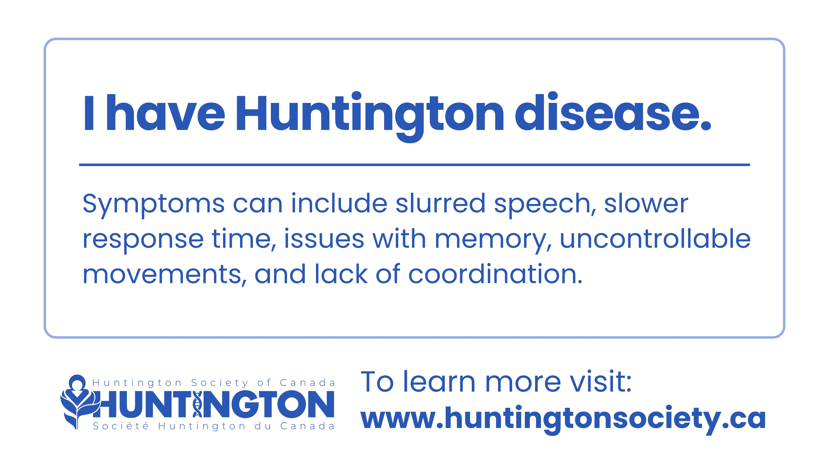 Copyright © Huntington Society of Canada. All Rights Reserved. Charitable Registration Number 11896 5516 RR0001
